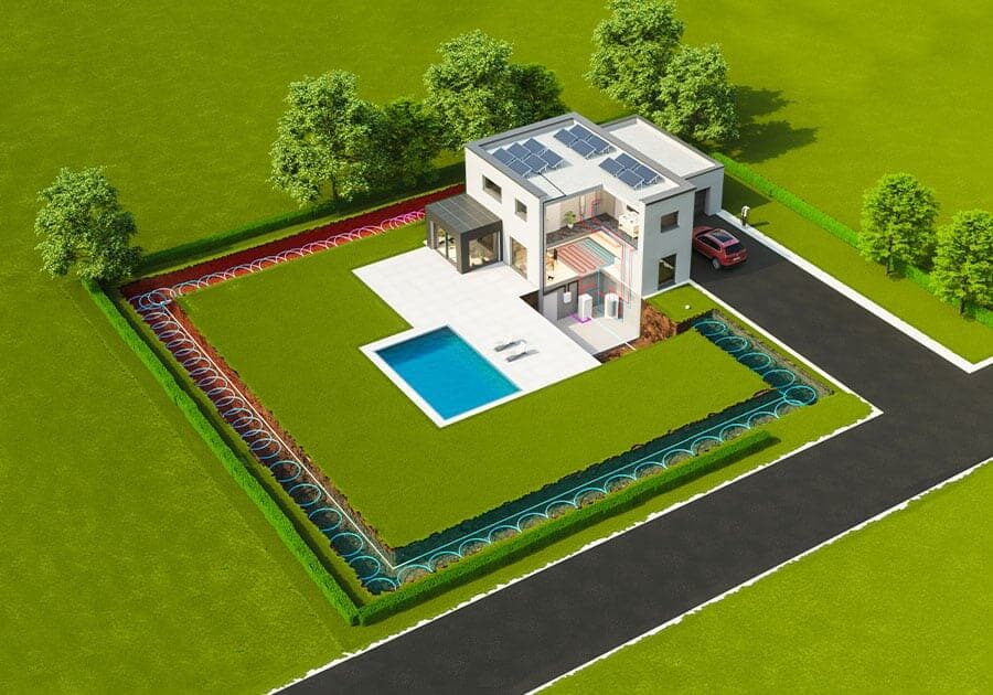 Der Ringgrabenkollektor ist die einfachste, energieeffizienteste und kostengünstigste Möglichkeit, Wärmepumpen mit Energie aus dem Erdreich zu versorgen. Die Anschaffungskosten sind dagegen deutlich geringer als jene von herkömmlichen Erdwärme-Systemen und vergleichbar mit denen von Luftwärmepumpen.